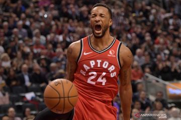 Pebasket Toronto Raptors Norman Powell (24) berteriak gembira setekah berhasil membuat poin saat melawan Charlotte Hornetsdalam laga lanjutan NBA, di Scotiabank Arena, Toronto, Ontario, Kanada, Senin (18/11/2019). Raptors berhasil menang atas Hornets 132-96. ANTARA FOTO/Reuters-Dan Hamilton-USA TODAY Sports/hp.