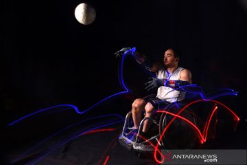 Atlet paralimpik cabang rugby kursi roda, Chuck Aoki berpose dengan teknik "bulb photography" pada sesi pemotretan Tim Olimpiade USA Tokyo 2020 di Hollywood, California, Selasa (19/11/2019). ANTARA/AFP/Harry How/aa.
