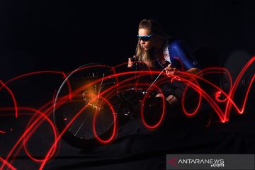 Atlet paralimpik cabang sepeda, Oksana Masters berpose dengan teknik "bulb photography" pada sesi pemotretan Tim Olimpiade USA Tokyo 2020 di Hollywood, California, Selasa (19/11/2019). ANTARA/AFP/Harry How/aa.