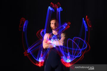 Atlet paralimpik cabang triatlon, Brad Snyder berpose dengan teknik "bulb photography" pada sesi pemotretan Tim Olimpiade USA Tokyo 2020 di Hollywood, California, Selasa (19/11/2019). ANTARA/AFP/Harry How/aa.