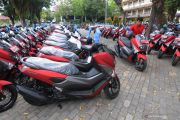 Petugas menata motor untuk perangkat desa di Kantor Pemerintahan Kabupaten Klaten, Jawa Tengah, Jumat (22/11/2019). Untuk menunjang kinerja perangkat desa, sebanyak 401 unit kendaraan motor baru tersebut dibagikan kepada pemerintah desa di Kabupaten Klaten. ANTARA FOTO/Aloysius Jarot Nugroho/hp.