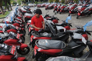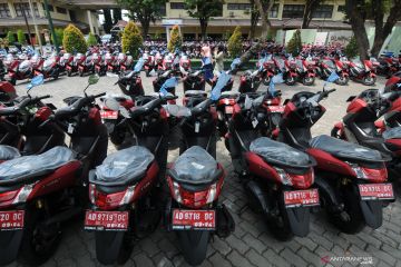 Petugas mengecek surat-surat kendaraan motor untuk perangkat desa di Kantor Pemerintahan Kabupaten Klaten, Jawa Tengah, Jumat (22/11/2019). Untuk menunjang kinerja perangkat desa, sebanyak 401 unit kendaraan motor baru tersebut dibagikan kepada pemerintah desa di Kabupaten Klaten. ANTARA FOTO/Aloysius Jarot Nugroho/hp.