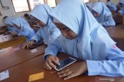 Pelajar mengikuti ujian semester sekolah menggunakan gawai berbasis android di SMK Negeri 1 Warungasem, Kabupaten Batang, Jawa Tengah, Rabu (27/11/2019). Pihak sekolah melakukan inovasi ujian semester menggunakan aplikasi gawai android bernama Ujian Berbasis Komputer Android (UBKA) hasil buatan mandiri tim IT sekolah yang diciptakan oleh M. Hanafi sehingga dapat menghemat anggaran ujian sebesar sekitar 70 persen secara berkala. ANTARA FOTO/Harviyan Perdana Putra/wsj.