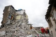 Personil tanggap darurat dari Yunani bekerja di sebuah bangunan yang rusak, setelah gempa bumi bermagnitudo 6,0 Selasa, di Thumane, Albania, (27/11/2019) dini hari waktu setempat. ANTARA/REUTERS/Florion Goga/aa.