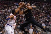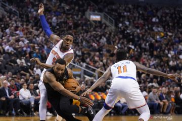 Pebasket Toronto Raptors Norman Powell (24) berupaya melewati hadangan pebasket New York Knicks Wayne Ellington (2) dalam laga lanjutan NBA, di Scotiabank Arena, Toronto, Ontario, Kanada, Rabu (27/11/2019). Toronto Raptors berhasil mengalahkan New York Knicks 126-98 ANTARA FOTO/Reuters-John E. Sokolowski-USA TODAY Sports/hp.