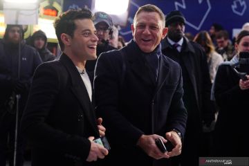 Aktor Daniel Craig dan Rami Malek menyapa penggemar saat promosi film terbaru James Bond "No Time to Die" di New York, Rabu (4/12/2019). ANTARA FOTO/ REUTERS/Carlo Allegri/pras.