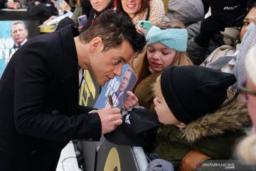 Aktor Rami Malek menyapa penggemar saat promosi film terbaru James Bond "No Time to Die" di New York, Rabu (4/12/2019). ANTARA FOTO/ REUTERS/Carlo Allegri/pras.