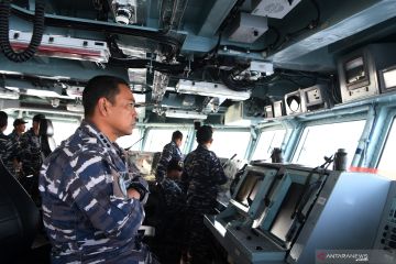 Komadan KRI Usman Harun-359 Kolonel Laut (P) Himawan mengamati radar di anjungan KRI Usman Harun ketika akan sandar di Dermaga Lantamal VII Kupang, NTT, Sabtu (7/12/2019). KRI Usman Harun-359 bersandar di Kupang hingga Selasa,10 Desember sebelum melakukan misi diplomasi di Timor Leste. ANTARA FOTO/Zabur Karuru/hp.