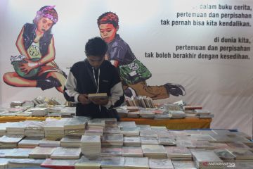 Pengunjung memilih buku yang dipajang dalam Kumpul Buku di Taman Krida Budaya, Malang, Jawa Timur, Sabtu (7/12/2019). Kegiatan pameran buku yang berlangsung selama lima hari tersebut diadakan untuk memberi ruang literasi kepada masyarakat dalam upaya meningkatkan minat baca. ANTARA FOTO/Ari Bowo Sucipto/hp.