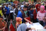 Petugas Dinas Kependudukan dan Catatan Sipil melayani pembuatan Kartu Identitas Anak di Alun-alun Malang, Jawa Timur, Sabtu (7/12/2019). Pelayanan tersebut dilakukan di ruang publik dengan sistem jemput bola untuk memberi kemudahan bagi masyarakat terutama anak-anak dalam memperoleh Kartu Identitas Anak. ANTARA FOTO/Ari Bowo Sucipto/hp.