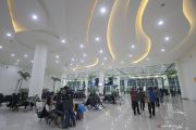 Sejumlah penumpang berada di ruang tunggu di terminal baru Bandara Syamsudin Noor di Banjarbaru, Kalimantan Selatan, Selasa (10/12/2019). PT. Angkasa Pura I (Persero) resmi mengoperasikan terminal baru Bandara Syamsudin Noor tepat pukul 05.00 WITA pada Selasa (10/12/2019). ANTARA FOTO/Bayu Pratama S/hp.