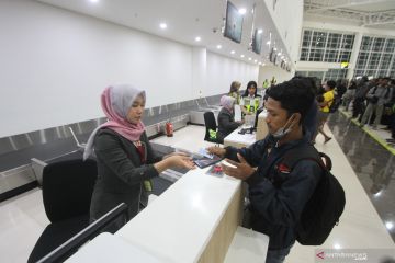 Sejumlah calon penumpang melakukan boarding pass di terminal baru Bandara Syamsudin Noor di Banjarbaru, Kalimantan Selatan, Selasa (10/12/2019). PT. Angkasa Pura I (Persero) resmi mengoperasikan terminal baru Bandara Syamsudin Noor tepat pukul 05.00 WITA pada Selasa (10/12/2019). ANTARA FOTO/Bayu Pratama S/hp.