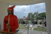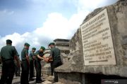 Anggota TNI berziarah di kompleks Taman Makam Pahlawan Sultan Hasanuddin dan raja-raja Gowa, Kabupaten Gowa, Sulawesi Selatan, Selasa, (10/12/2019). Ziarah tersebut dalam rangka peringatan hari juang TNI Angkatan Darat dan juga sebagai bentuk penghormatan kepada pahlawan nasional. ANTARA FOTO/Abriawan Abhe/hp.