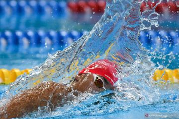 Perenang asal Paotere Kabupaten Merauke, Farrel Armando Tangkas memacu kecepatan pada final 400 meter gaya bebas putra dalam Indonesia Open Swimming Championships 2019 di Stadion Akuatik, GBK, Jakarta, Jumat (13/12/2019). Farrel Armando Tangkas meraih emas dengan catatan waktu 04 menit 00.07 detik. ANTARA FOTO/M Risyal Hidayat/hp.