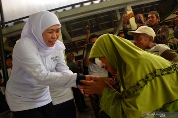 Gubernur Jatim, Khofifah Indar Parawansa (kiri) saat meninjau operasi mata gratis di Rumah Sakit Umum Daerah Kabupaten Jombang, Jawa Timur, Sabtu (14/12/2019). Operasi mata katarak gratis dalam rangka bakti sosial Hari Kesetiakawanan Sosial Nasional (HKSN) 2019 dan Hari Armada tersebut diikuti sekitar puluhan masyarakat kurang mampu di Kabupaten Jombang. ANTARA FOTO/Syaiful Arif/hp.