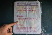 Harga kopi yang ditawarkan rumah produksi Koperasi Unit Desa (KUD) Rimba Kakupi Ambaridiru, Kepuluan Yapen, Papua, Rabu (18/12/19). Kopi jenis robusta asal Ambaidiru Kepulauan Yapen adalah salah satu kopi terbaik asal Papua yang telah menembus pasar Nasional bahkan Internasional. ANTARA FOTO/Indrayadi TH/ama.