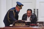 Presiden Joko Widodo (kanan) bersiap memimpin rapat presentasi desain ibu kota negara baru di Kantor Presiden, Jakarta, Jumat (20/12/2019). Presiden Joko Widodo mengapresiasi sejumlah rancangan yang terpilih dari total 755 peserta sayembara desain ibu kota baru yang nantinya akan dipilih satu rancangan tata kota untuk digunakan. ANTARA FOTO/Akbar Nugroho Gumay/aww.