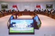 Presiden Joko Widodo (tengah) memimpin rapat presentasi desain ibu kota negara baru di Kantor Presiden, Jakarta, Jumat (20/12/2019). Presiden Joko Widodo mengapresiasi sejumlah rancangan yang terpilih dari total 755 peserta sayembara desain ibu kota baru yang nantinya akan dipilih satu rancangan tata kota untuk digunakan. ANTARA FOTO/Akbar Nugroho Gumay/aww.