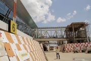 Seorang pekerja berjalan disamping gedung terminal bandara El Tari yang hingga saat ini masih dalam proses pembangunan di Kota Kupang, NTT, Sabtu (21/12/19). Progres pembangunan terminal bandara internasional itu baru mencapai 83-an persen dan ditargetkan baru bisa selesai pada Februari 2020, dari target awal Desember 2019. ANTARA FOTO/Kornelis Kaha/ama.