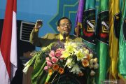 Menko Polhukam Mahfud MD menyampaikan orasi ilmiah saat wisuda Universitas Islam Kadiri di Kota Kediri, Jawa Timur, Sabtu (21/12/2019). Mahfud MD dalam orasi ilmiahnya menyatakan pentingnya agama dalam membentuk moralitas dan penyeimbang ilmu pengetahuan. ANTARA FOTO/Prasetia Fauzani/ama.