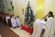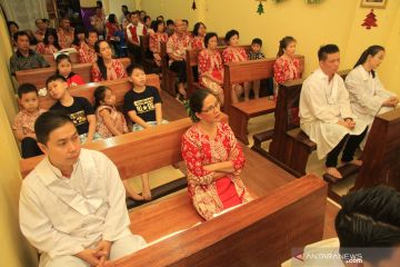 Sejumlah warga kristiani mendengarkan ceramah dalam ibadah Natal di Gereja Stasi Antonius Meulaboh, Aceh Barat, Rabu (25/12/2019). Perayaan Natal 2019 di Aceh mengusung tema Yesus datang membawa damai untuk dunia. ANTARA FOTO/Syifa Yulinnas/ama.