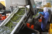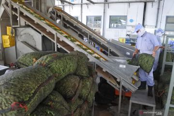 Pekerja melakukan proses pengolahan kedelai Edamame di PT Mitratani Dua Tujuh, Mangli, Jember, Jawa Timur, Kamis (26/12/2019). PT Mitratani Dua Tujuh, anak perusahaan PTPN X, memproduksi kedelai Edamame sebanyak 11.500 ton per tahun untuk kebutuhan pasar ekspor dengan tujuan ke sejumlah negara seperti Jepang, Amerika Serikat, dan Belanda. ANTARA FOTO/Seno/Pras.
