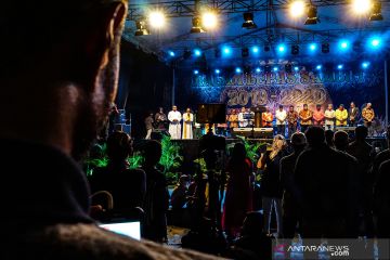 Wakil Gubernur Papua Klemen Tinal bersama sejumlah tokoh agama, Forkopimda Papua, TNI Polri berdoa menjelang pergantian tahun 2019 ke tahun 2020 di halaman Kantor Gubernur Papua, Dok II Kota Jayapura, Selasa (31/12/19). Pemerintah Provinsi Papua gelar doa bersama ratusan masyarakat sebelum memasuki tahun 2020. ANTARA FOTO/Indrayadi TH/pras.