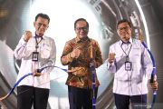Wakil Menteri BUMN Kartika Wirjoatmodjo (tengah) bersama Direktur Utama PT Bank Tabungan Negara (Persero) Tbk Pahala N Mansury (kanan) dan Komisaris Utama Chandra Hamzah (kiri) berpose usai melepaskan anak panah pada pembukaan Rapat Kerja BTN tahun 2020 di Jakarta, Jumat (10/1/2020). Rapat Kerja BTN yang mengusung tema "Memperkuat Budaya Inovasi dan Integritas Untuk Bisnis yang Lebih Berkualitas" itu membahas strategi dan rencana bisnis perusahaan tahun 2020. ANTARA FOTO/Hafidz Mubarak A/wsj.