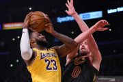 Pebasket Los Angeles Lakers LeBron James (kiri) berupaya melewati penjagaan pebasket Cleveland Cavaliers Kevin Love (kanan) dalam pertandingan babak lanjutan NBA, di Staples Center, Los Angeles, California, AS, Senin (13/1/2020). Lakers berhasil menumbangkan Cleveland Cavaliers 128-99. ANTARA FOTO/Reuters-Robert Hanashiro-USA TODAY Sports/hp.