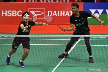 Pebulu tangkis ganda campuran Indonesia Tontowi Ahmad (kanan) dan Apriyani Rahayu berselebrasi usai mengalahkan pebulu tangkis ganda campuran Thailand Supak Jomkoh dan Supissara Paewsampran saat pertandingan putaran pertama (32 besar) Daihatsu Indonesia Masters 2020 di Istora Senayan, Jakarta, Selasa (14/1/2020). Tontowi dan Apriyani menang dua gim langsung dengan skor 21-16 dan 21-17. ANTARA FOTO/Aditya Pradana Putra/hp.