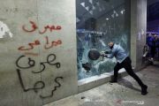 Demonstran menghancurkan jendela sebuah bank saat demonstrasi menentang krisis ekonomi yang berlanjut di Beirut, Lebanon, Selasa (14/1/2020). ANTARA FOTO/REUTERS/Mohamed Azakir/aww.