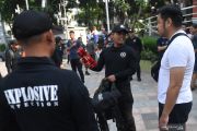 Seorang anggota Unit K-9 Polri menunjukkan bom yang berhasil diendus oleh anjing pelacak di antara masyarakat yang memadati hari bebas kendaraan bermotor atau car free day (CFD) saat simulasi di Jakarta, Minggu (19/1/2020). Simulasi tersebut bertujuan untuk meningkatkan kewaspadaan akan bahaya terorisme. ANTARA FOTO/Akbar Nugroho Gumay/wsj.