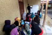 Warga belajar dasar komputer di teras rumah warga saat hujan di Papring, Kalipuro, Banyuwangi, Jawa Timur, Minggu (17/1/2020). Kegiatan belajar non formal yang didirikan oleh Kampoeng Batara untuk kejar paket A dan B itu, digelar karena banyak warga sekitar yang tidak menamatkan pendidikannya di tingkat SD dan SMP. ANTARA FOTO/Budi Candra Setya/foc.