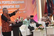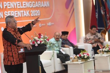 Ketua KPU Arief Budiman memberikan paparan saat berlangsungnya acara refleksi hasil penyelenggaraan pemilu serentak 2019 dan persiapan penyelenggaraan pemilihan serentak 2020 di Jakarta, Rabu (22/1/2020). ANTARA FOTO/Akbar Nugroho Gumay/hp.