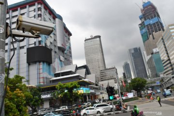 Kamera pengawas atau 'closed circuit television' (CCTV) terpasang di Jalan MH Thamrin, Jakarta, Kamis (23/1/2020). Direktorat Lalu Lintas Polda Metro Jaya akan menerapkan tilang elektronik atau 'electronic traffic law enforcement' (ETLE) untuk pengendara sepeda motor di sepanjang Jalan Sudirman - MH Thamrin dan jalur koridor 6 Trans-Jakarta Ragunan-Dukuh Atas mulai awal Februari 2020. ANTARA FOTO/Aditya Pradana Putra/hp.