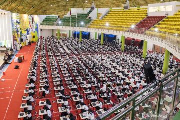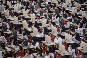 Sejumlah peserta mengikuti Seleksi Kompetensi Dasar (SKD) berbasis Computer Assisted Test (CAT) untuk Calon Pegawai Negeri Sipil (CPNS) Pemprov Jabar di GOR Arcamanik, Bandung, Jawa Barat, Kamis (30/1/2020). Sebanyak 37.985 peserta mengikuti seleksi yang dilaksanakan pada 29 Januari - 8 Februari 2020. ANTARA FOTO/M Agung Rajasa/aww.