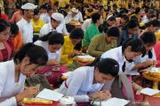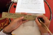 Peserta menuliskan aksara Bali di atas daun lontar dalam festival "Nyurat Lontar" yaitu rangkaian peringatan Bulan Bahasa Bali 2020 di Taman Budaya Bali, Denpasar, Bali, Sabtu (1/2/2020). Kegiatan yang diikuti 2.020 peserta tersebut merupakan upaya perlindungan dan penggunaan bahasa, aksara serta sastra Bali. ANTARA FOTO/Nyoman Hendra Wibowo/nym/hp.