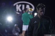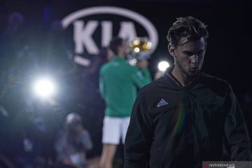 Petenis Austria Dominic Thiem membelakangi sesi foto petenis Serbia Novak Djokovic yang mengalahkannya pada partai final tunggal putra Australia Open di Melbourne Park, Melbourne, Australia, Minggu (2/2/2020). Djokovic menang dengan skor 6-4, 4-6, 2-6, 6-3, 6-4. ANTARAFOTO/.REUTERS/Kim Hong-Ji/foc.
