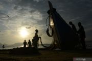 Nelayan tradisional membenahi alat tangkap pukat pantai di perairan Kampung Jawa, Banda Aceh, Jumat (7/2/2020). Kementerian Kelautan dan Perikanan (KKP) menyatakan perolehan pagu anggaran tahun 2020 senilai Rp6,47 triliun atau naik 18 persen dibandingkan 2019 sebesar Rp5,48 triliun digunakan untuk menggenjot sejumlah program dalam pencapaian target pertumbuhan Produk Domestik Bruto (PDB) sektor perikanan tahun 2020 yang dipatok sebesar 7,9 persen ANTARA FOTO/Ampelsa/foc.
