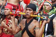 Sejumlah tatung (dukun Tionghoa yang kerasukan arwah leluhur) beratraksi di acara perayaan Cap Go Meh di Sungai Raya, Kabupaten Kubu Raya, Kalimantan Barat, Sabtu (8/2/2020). Atraksi tatung yang rutin dilakukan setiap perayaan Cap Go Meh tersebut menjadi salah satu agenda wisata di Kalimantan Barat. ANTARA FOTO/Jessica Helena Wuysang/wsj.