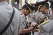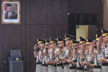 Sejumlah perwira tinggi Polri bersiap mengikuti upacara serah terima jabatan pejabat tinggi Polri di Mabes Polri, Jakarta, Selasa (11/2/2020). Kapolri Jenderal Pol Idham Azis melantik delapan Kapolda yakni Kapolda Kalimantan Barat Irjen Pol Remigius Sigid Tri Hardjanto, Kapolda Sulawesi Utara Irjen Pol Royke Lumowa, Kapolda Maluku Brigjen Pol Baharudin Djafar, Kapolda Sulawesi Barat Brigjen Pol Eko Budi Sampurno, Kapolda Aceh Brigjen Pol Wahyu Widada, Kapolda Jambi Irjen Pol Firman Shantyabudi, Kapolda Gorontalo Brigjen Pol Adnas dan Kapolda Maluku Utara Brigjen Pol Rikwanto serta sejumlah pejabat tinggi Polri lainnya. ANTARA FOTO/Hafidz Mubarak A/hp.