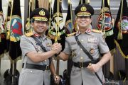 Kapolda Kalimantan Barat Irjen Pol Remigius Sigid Tri Hardjanto (kiri) berjabat tangan dengan Kapolda Sulawesi Utara Irjen Pol Royke Lumowa seusai mengikuti upacara serah terima jabatan pejabat tinggi Polri di Mabes Polri, Jakarta, Selasa (11/2/2020). Kapolri Jenderal Pol Idham Azis melantik Irjen Pol Remigius Sigid Tri Hardjanto menjadi Kapolda Kalimantan Barat menggantikan Irjen Pol Did Haryono yang menjadi Analis Kebijakan Utama Itwasum Polri dan Irjen Pol Royke Lumowa menjadi Kapolda Sulawesi Utara menggantikan Irjen Pol Remigius Sigid Tri Hardjanto. ANTARA FOTO/Hafidz Mubarak A/hp.