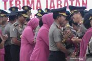 Kapolri Jenderal Pol Idham Azis memimpin pengucapan sumpah jabatan saat upacara serah terima jabatan pejabat tinggi Polri di Mabes Polri, Jakarta, Selasa (11/2/2020). Kapolri Jenderal Pol Idham Azis melantik delapan Kapolda yakni Kapolda Kalimantan Barat Irjen Pol Remigius Sigid Tri Hardjanto, Kapolda Sulawesi Utara Irjen Pol Royke Lumowa, Kapolda Maluku Brigjen Pol Baharudin Djafar, Kapolda Sulawesi Barat Brigjen Pol Eko Budi Sampurno, Kapolda Aceh Brigjen Pol Wahyu Widada, Kapolda Jambi Irjen Pol Firman Shantyabudi, Kapolda Gorontalo Brigjen Pol Adnas dan Kapolda Maluku Utara Brigjen Pol Rikwanto serta sejumlah pejabat tinggi Polri lainnya. ANTARA FOTO/Hafidz Mubarak A/hp.