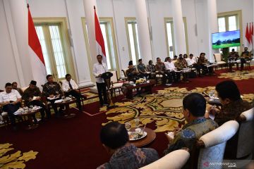 Presiden Joko Widodo (kelima kiri) menyampaikan pengarahan dalam Sidang Kabinet Paripurna di Istana Bogor, Jawa Barat, Selasa (11/2/2020). Sidang kabinet tersebut membahas Antisipasi Dampak Perekonomian Global. ANTARA FOTO/Sigid Kurniawan/hp.