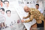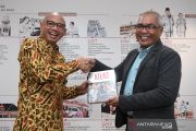 Dirut MRT Jakarta William Sabandar (kiri) membubuhkan tanda tangan disaksikan Kepala Redaksi Metro LKBN ANTARA, Santoso saat mengunjungi ruang redaksi ANTARA di Jakarta, Kamis (13/2/2020). ANTARA FOTO/M Risyal Hidayat/pras.