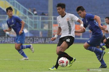 Pesepak bola Persija Jakarta, Alfath Faathier (tengah) berusaha melewati hadangan pesepak bola Sabah FA-Malaysia Ummareng Bacok (kanan) dan Park Taesu (kiri) dalam pertandingan Piala Gubernur Jatim Grup B di Stadion Kanjuruhan, Malang, Jawa Timur, Kamis (13/2/2020). Persija menang atas Sabah FA dengan skor akhir 2-0. ANTARA FOTO/Ari Bowo Sucipto/foc.