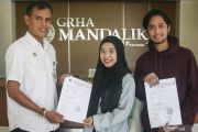 Kabid Pelayanan Medis RSUP NTB dr. I Nyoman Wijaya Kusuma (kiri) memberikan surat keterangan kesehatan sebagai bukti dan menjamin bebas dari Coronavirus Disease (COVID-19) kepada mahasiswi asal Lombok Tengah yang mendapat beasiswa LPP di Yangzhou University Media Arifiani (tengah) dan mahasiswa asal Sumbawa yang mendapat beasiswa di Nanjing University of Science and Technology Bayu Putra Sagita (kanan) yang telah selesai menjalani observasi untuk dipulangkan di RSUD Provinsi NTB di Mataram, NTB, Jumat (21/2/2020). Sejak pemulangan mahasiswa Indonesia, termasuk asal NTB yang menempuh pendidikan di China, RSUD Provinsi NTB telah menangani 33 orang termasuk warga sipil lainnya yang telah di observasi di rumah sakit tersebut yang terdiri dari 29 mahasiswa dan 4 orang warga NTB etnis Tionghoa.ÊANTARA FOTO/Hero/AS/hp.