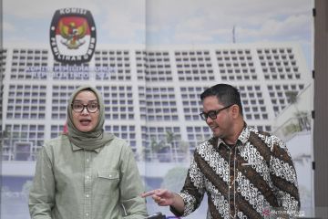 Komisioner KPU Evi Novida Ginting Manik (kiri) dan Viryan Aziz memberikan pemaparan saat konferensi pers terkait bakal pasangan calon perseorangan Pilkada serentak 2020 di gedung KPU, Jakarta, Kamis (27/2/2020). KPU mencatat sebanyak 147 bakal pasangan calon Bupati dan Wakil Bupati/Wali Kota dan Wakil Wali Kota yang maju lewat jalur perseorangan untuk Pilkada serentak 2020 diterima syarat jumlah dukungannya oleh KPU Kabupaten/Kota yang kemudian akan dilakukan tahap verifikasi administrasi. ANTARA FOTO/Hafidz Mubarak A/hp.
