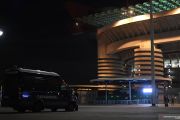 Sebuah mobil polisi berada di luar stadion saat berlangsung pertadingan antara Inter Milan melawan Ludogorets dalam laga babak 32 besar Liga Europa, di Stadion San Siro, Milan, Italia, Kamis (27/2/2020). Inter berhasil memenangkan pertandingan ini 2-1 dalam pertandingan yang digelar tanpa penonton menyusul wabah virus corona yang juga merebak di Italia. ANTARA FOTO/Reuters-Daniele Mascolo/hp.