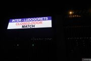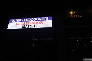 Sebuah layar kaca di luar Stadion San Siro yang menginforamsikan bahwa pertandingan tertutup untuk penonton saat Inter Milan melawan Ludogorets dalam laga babak 32 besar Liga Europa, di Milan, Italia, Kamis (27/2/2020). Inter berhasil memenangkan pertandingan ini 2-1 dalam pertandingan yang digelar tanpa penonton menyusul wabah virus corona yang juga merebak di Italia. ANTARA FOTO/Reuters-Daniele Mascolo/hp.